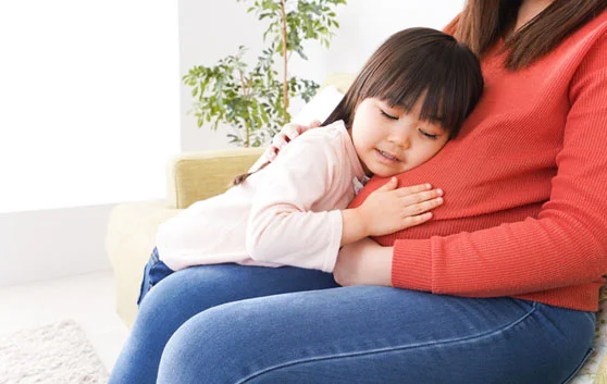 Stand face to face and then back to back; try sitting and lying down poses; hold hands and put hand on cheeks for a soft touch and hand on belly for a show of brimming emotions