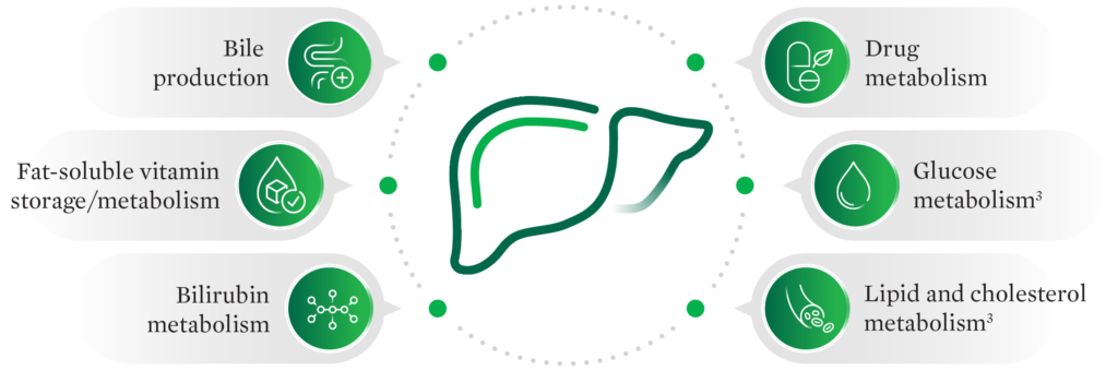 The liver, our body’s vital organ, performs over 500 functions. From detoxification and protein synthesis to digesting food and filtering toxins, it stands central to our well-being 1-2.