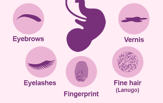 • White pasty substance called vernis will help protect the baby’s skin from the amniotic fluid